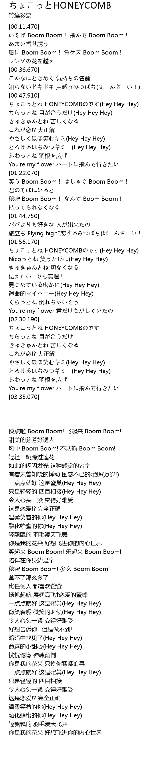 | [01:56.640] | ちょこっとね HONEYCOMBのです(Hey Hey Hey) |