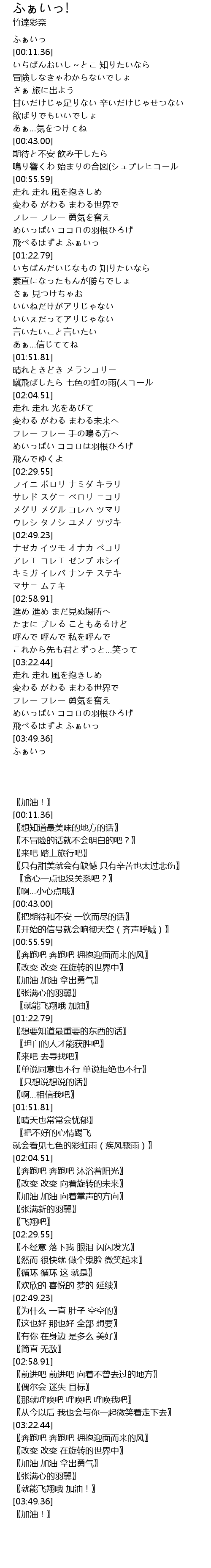 | [03:38.22] | めいっぱい ココロの羽根ひろげ |