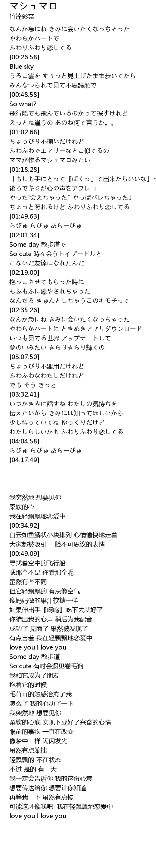 | [01:11.97] | ママが作るマシュマロみたい |