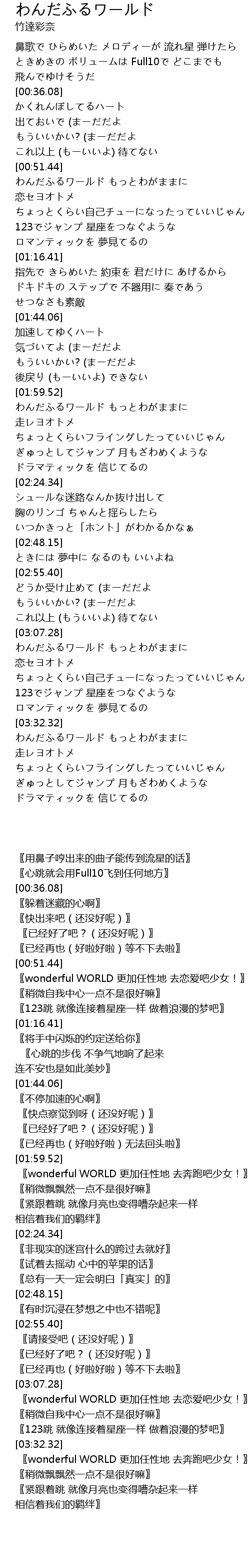 | [03:07.41] | わんだふるワールド もっとわがままに 恋セヨオトメ |