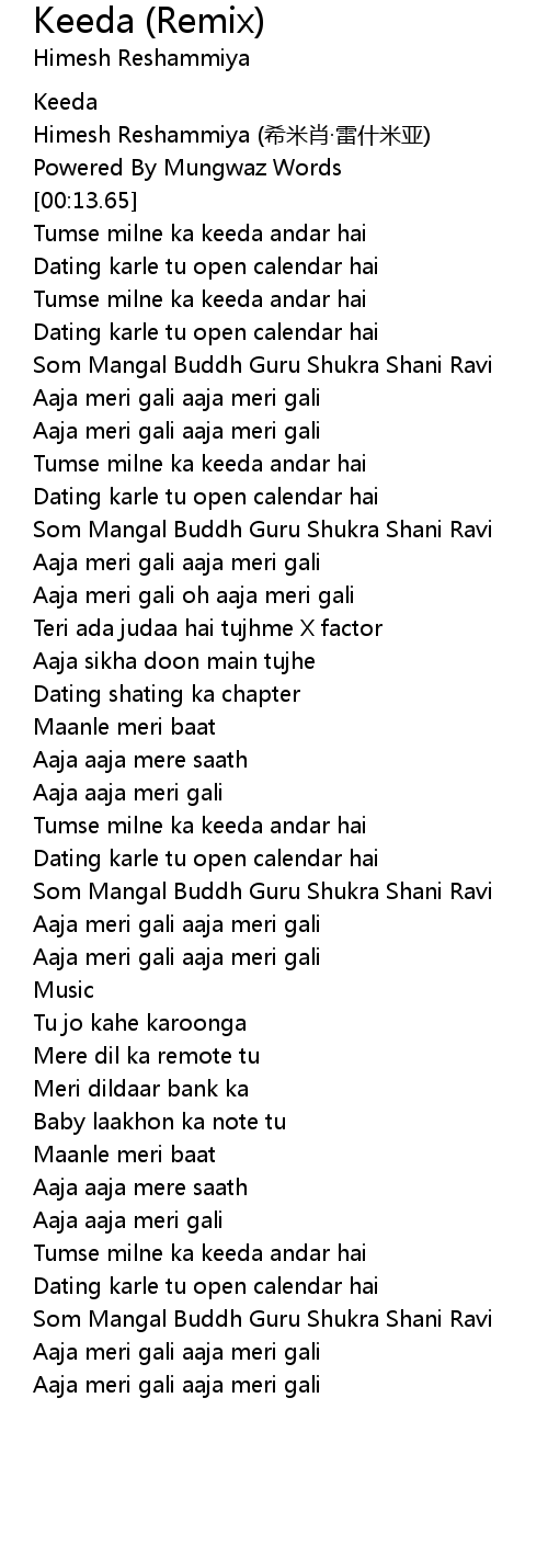| [01:52.76] | Aaja meri gali aaja meri gali |