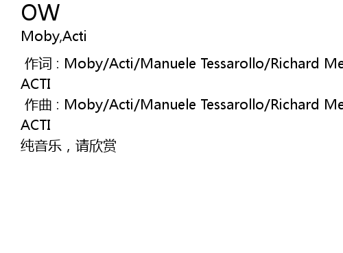 | [00:00.000] | 作词 : Moby/Acti/Manuele Tessarollo/Richard Melville Hall/MOBY & ACTI |