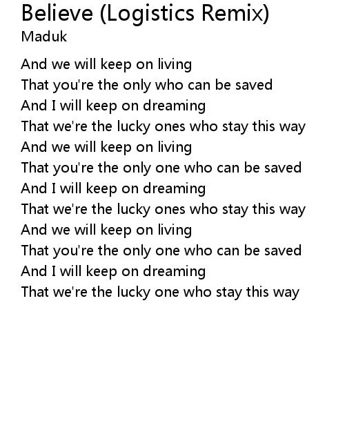 | Song | Believe (Logistics Remix) |