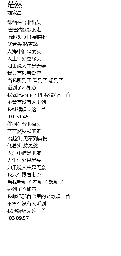 | [01:57.10] | 茫茫然默默的走 |