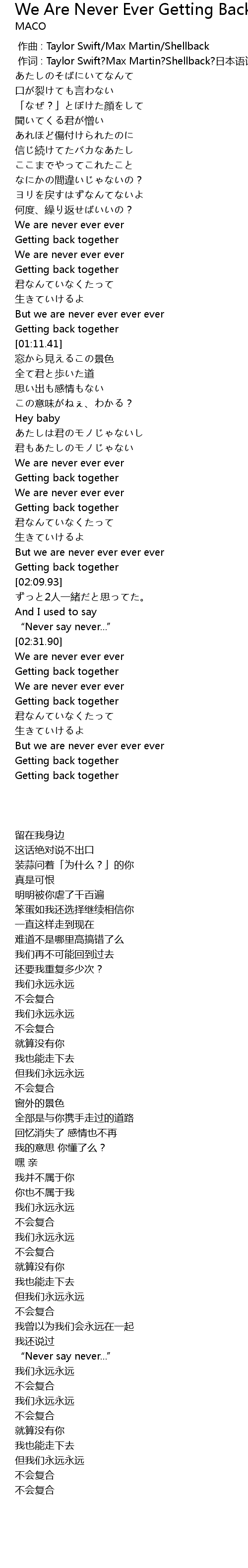 | [00:01.00] | zuo ci : Taylor Swift? Max Martin? Shellback? ri ben yu ci: MACO |