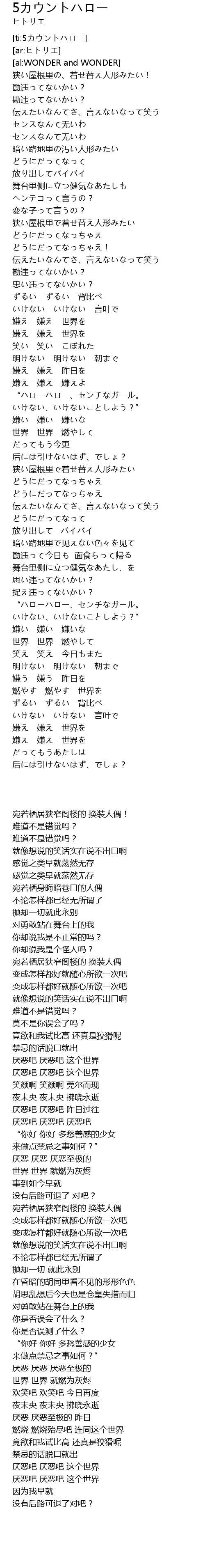 | [ti:5カウントハロー] | |