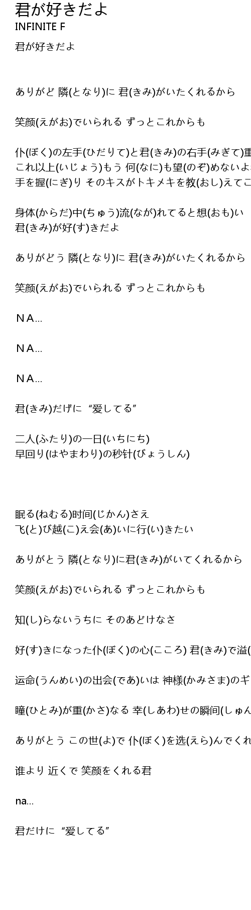 | 身体(からだ)中(ちゅう)流(なが)れてると想(おも)い 君(きみ)が好(す)きだよ | |