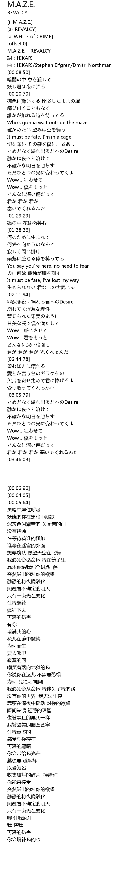 | [00:02.92] | M.A.Z.E. - REVALCY |