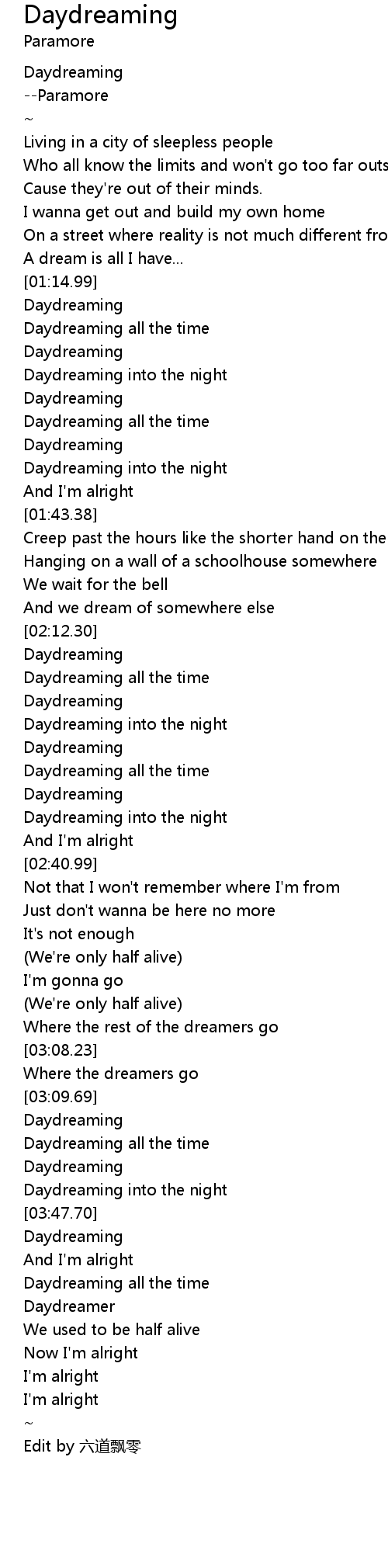 | [00:57.65] | On a street where reality is not much different from dreams I've had |