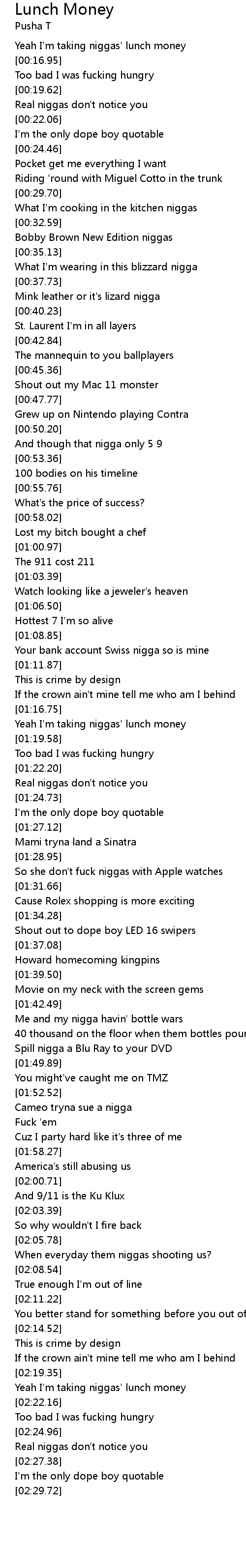 Yeah I'm taking niggas' lunch money |