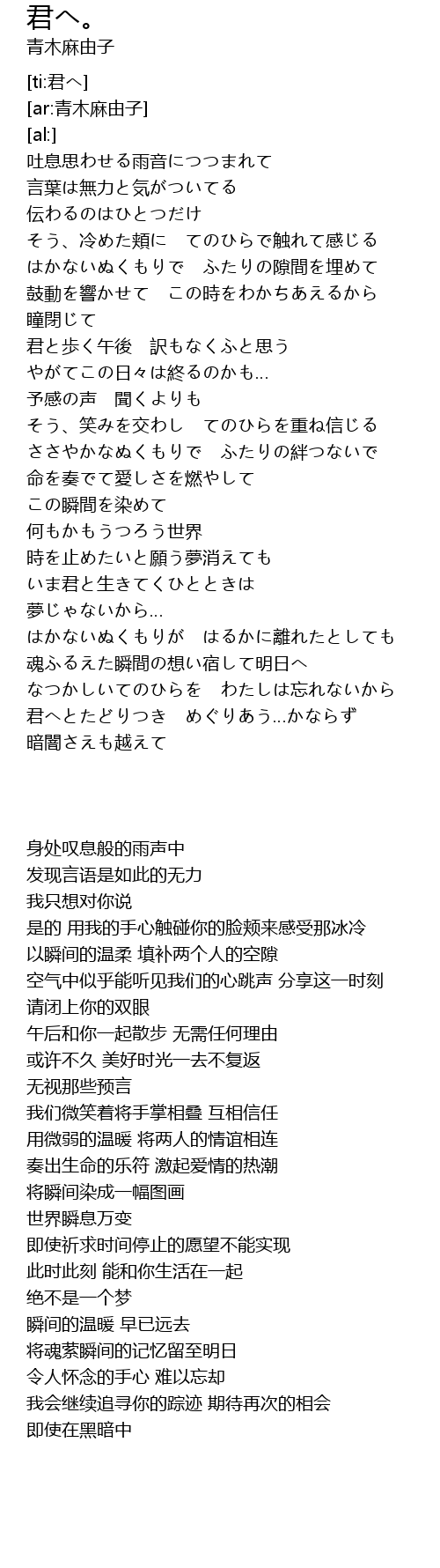 | [03:54.99] | なつかしいてのひらを わたしは忘れないから |