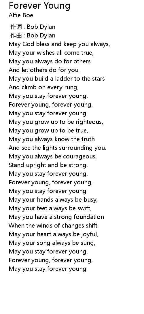| [00:41.89] | May you stay forever young, |