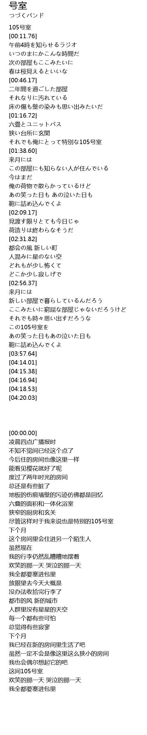 | [00:00.00] | 105号室 |