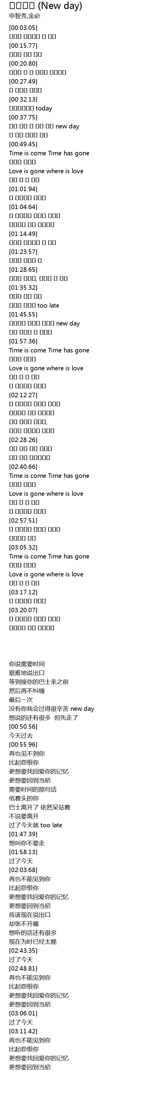 | [01:47.39] | 헤어지잔 말보다 바랬던 new day |