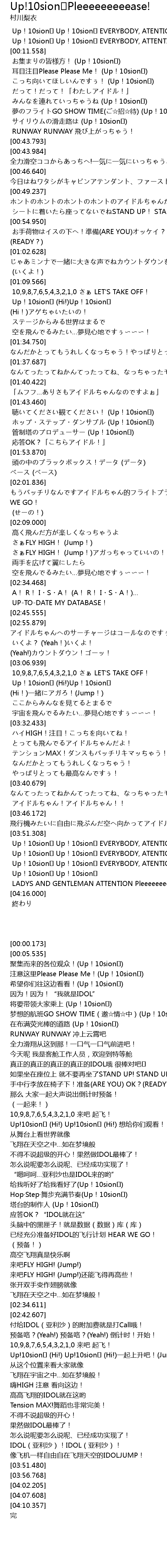 | [00:38.544] | サイリウムの滑走路は (Up!10sion♪) |