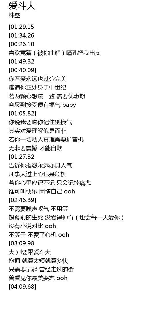 | [02:21.99][01:29.15][00:12.58] | dà shì nǐ gēn ài dǒu dà |
