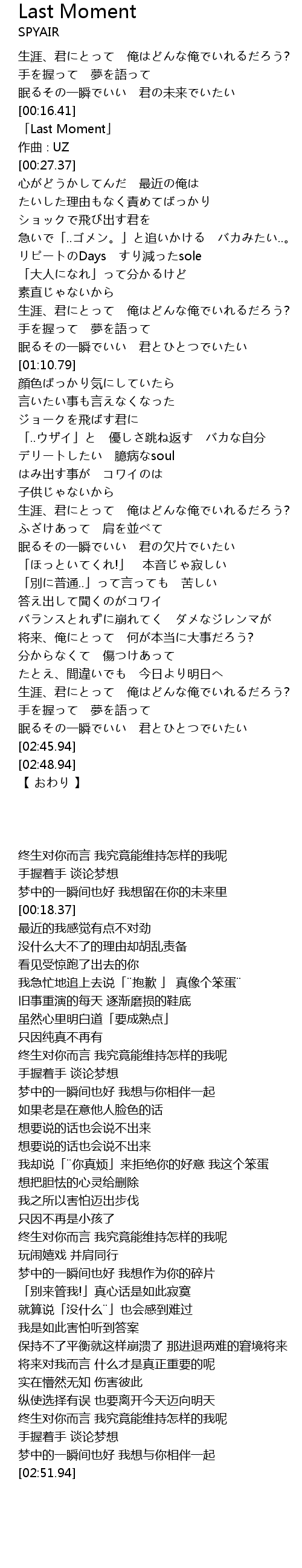 | [00:18.37] | 「Last Moment」 |