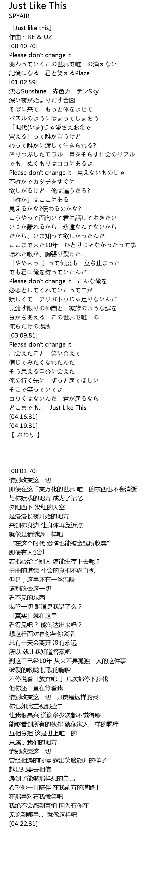 | [04:09.88] | Just Like This |