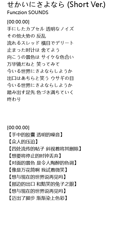 | [00:57.12] | 今いる世界にさよならしようか |