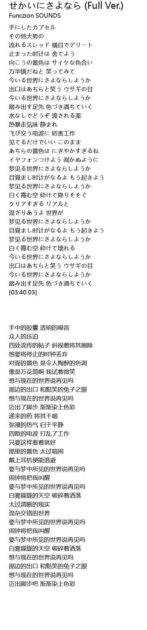 | [02:55.74] | 梦见る世界にさよならしようか |