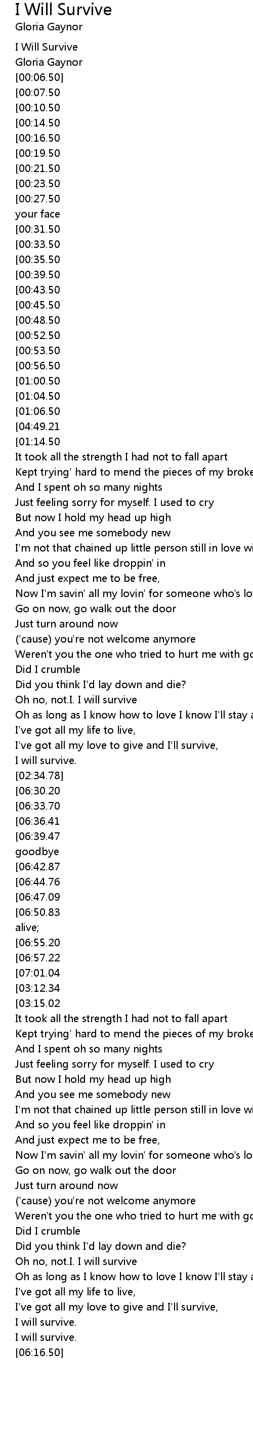 Oh no, not.I. I will survive |