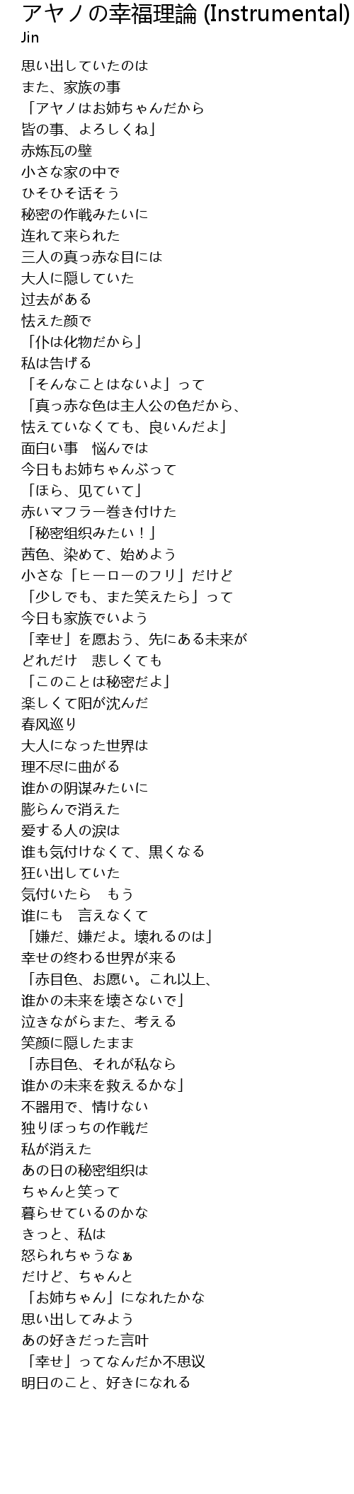 | [02:09.872] | 「幸せ」を愿おう、先にある未来が |