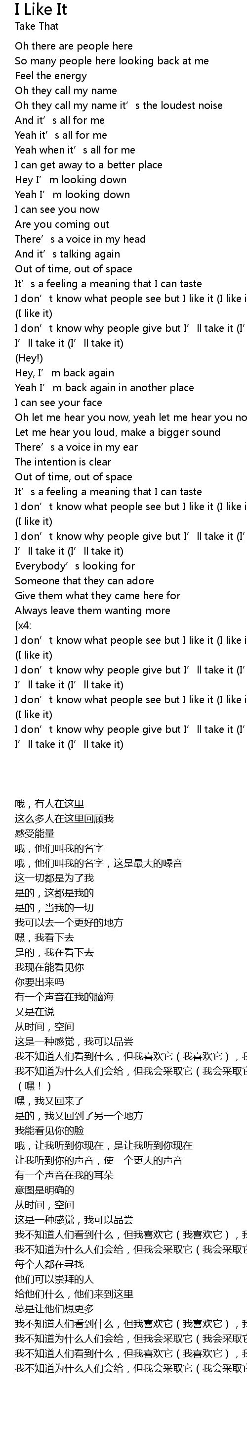 | [01:35.180] | I don' t know why people give but I' ll take it I' ll take it, I' ll take it I' ll take it |