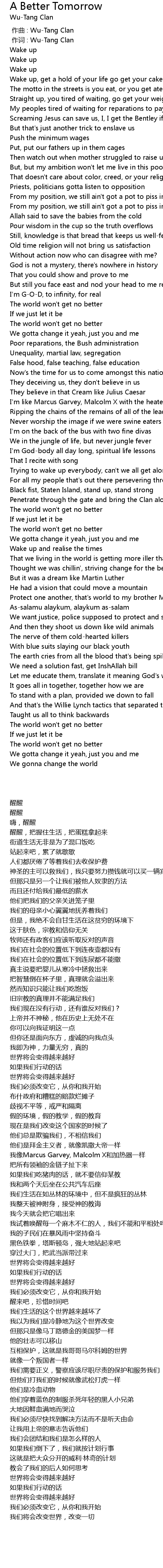| [00:01.00] | 作词 : Wu-Tang Clan |