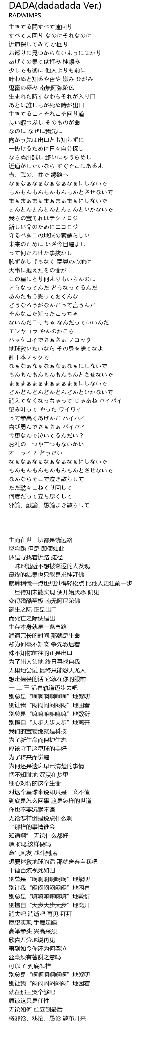 | [02:15.700] | 地球救いたいなら その身を捨てなよ |