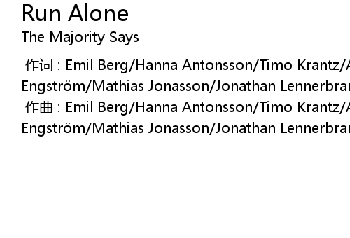 | [00:00.000] | 作词 : Emil Berg/Hanna Antonsson/Timo Krantz/Axel Engström/Mathias Jonasson/Jonathan Lennerbrant |