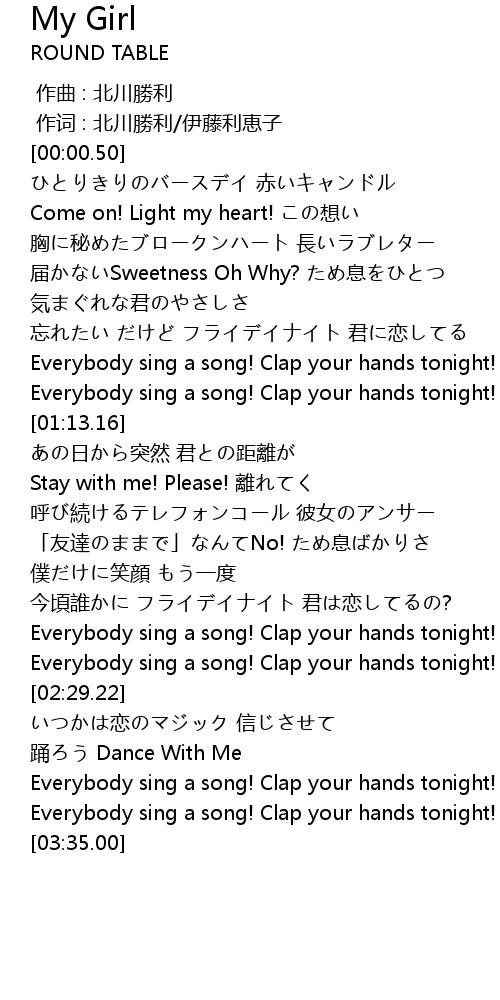 | [00:58.23] | Everybody sing a song! Clap your hands tonight! |