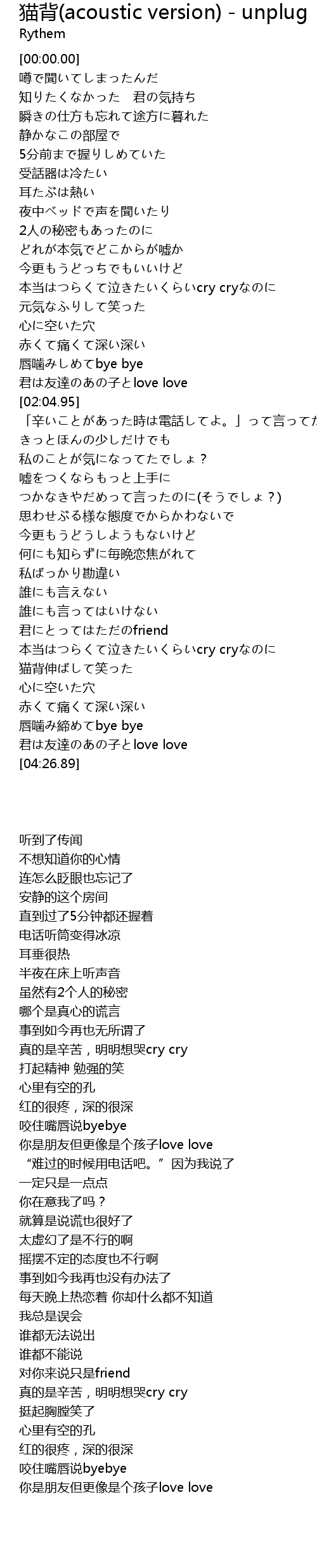| [02:51.15] | つかなきやだめって言ったのに(そうでしょ?) |