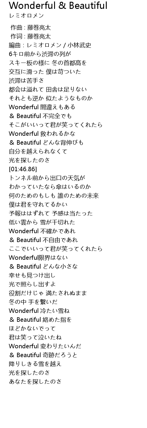 | [01:23.20] | Wonderful 救われるかな |