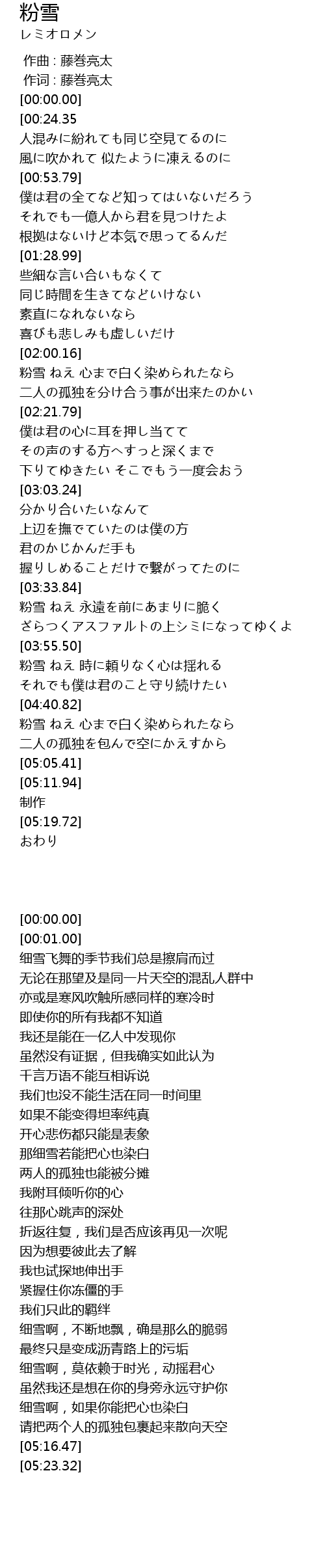 | [04:41.40] | 粉雪 ねえ 心まで白く染められたなら |