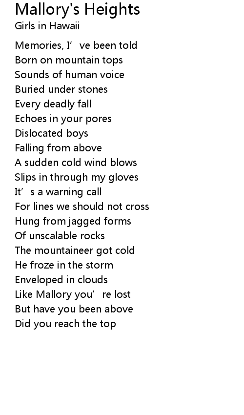 | Song | Mallory's Heights |
