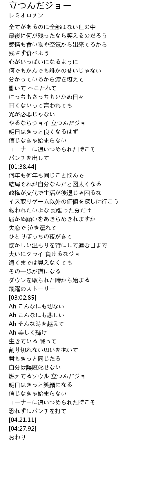 | [03:59.10] | 燃えてるソウル 立つんだジョー |