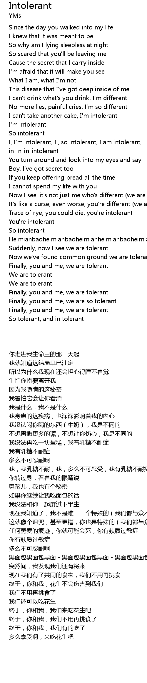 | [00:57.52] | I'm intolerant |