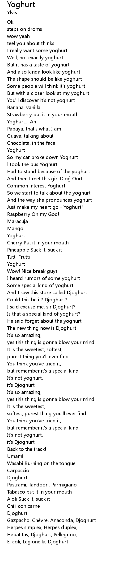 | It's not yoghurt, | |