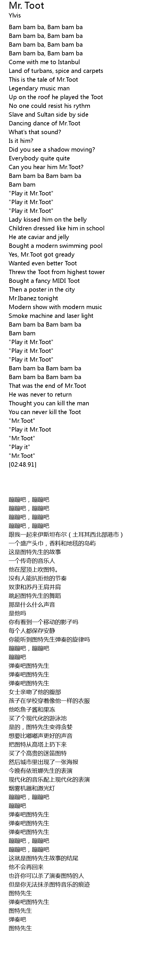 | [00:43.18] | Can you hear him Mr.Toot? |