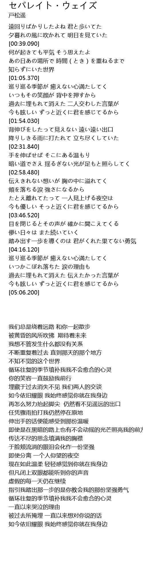 | [04:17.560] | 巡り巡る季節が 癒えない心満たしてく |