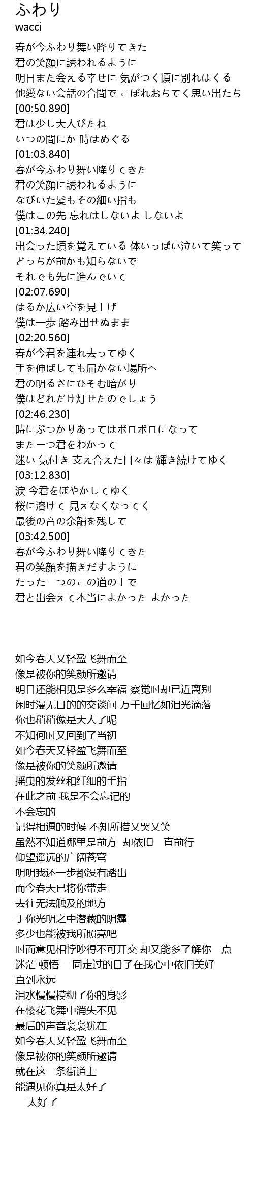| [03:44.140] | 春が今ふわり舞い降りてきた |