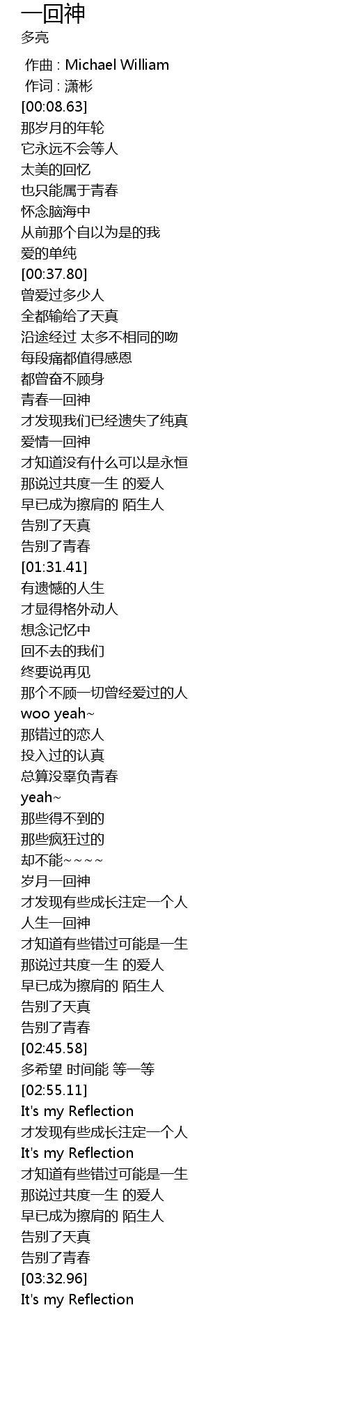 | [03:10.63] | cái zhī dào yǒu xiē cuò guò kě néng shì yī shēng |