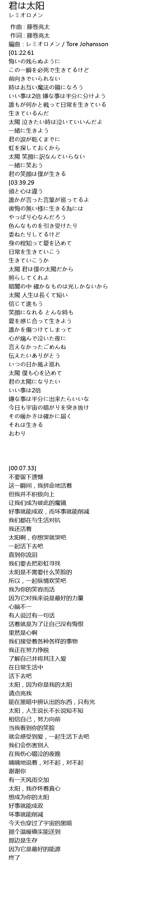 | [01:03.88] | 太陽 笑顔に訳なんていらない |