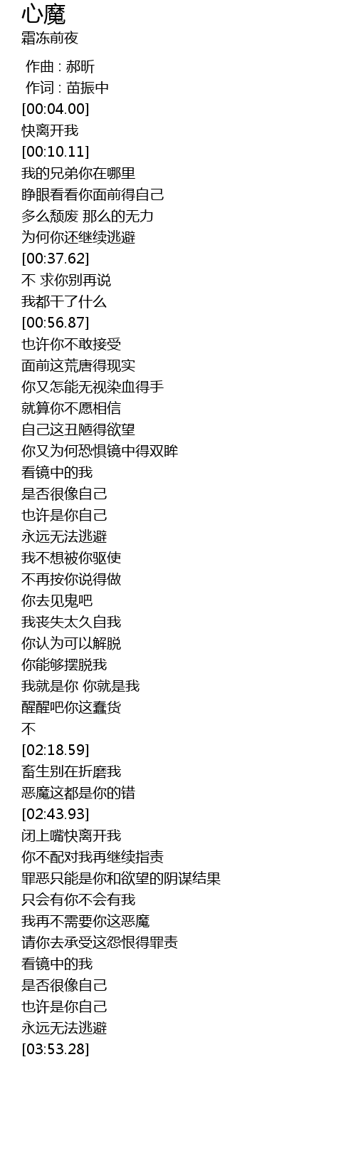 | [03:19.25] | 罪恶只能是你和欲望的阴谋结果 |