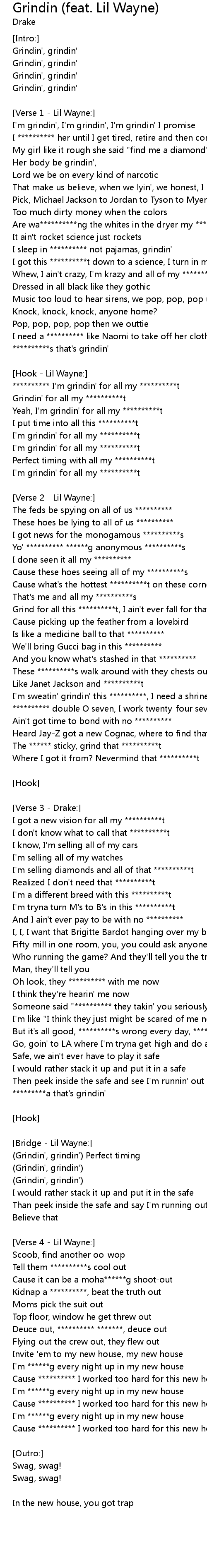 | ********** I'm grindin' for all my **********t | |
