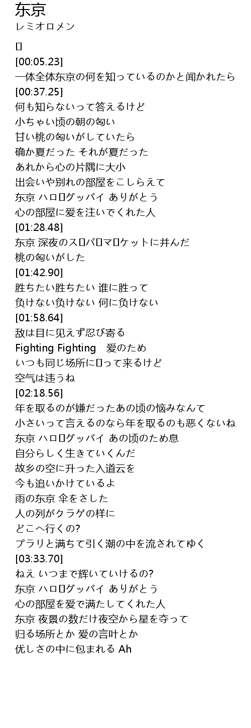 | [03:40.82] | 东京 ハロ�グッバイ ありがとう |