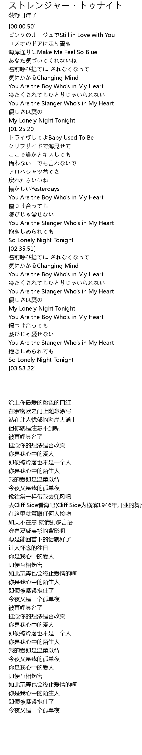 | [02:22.69] | You Are the Stanger Who's in My Heart |