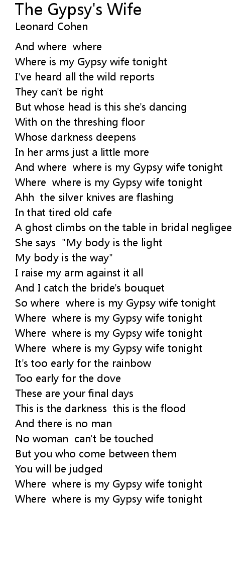 And where where is my Gypsy wife tonight |