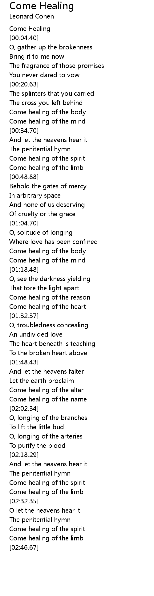 Come healing of the body |