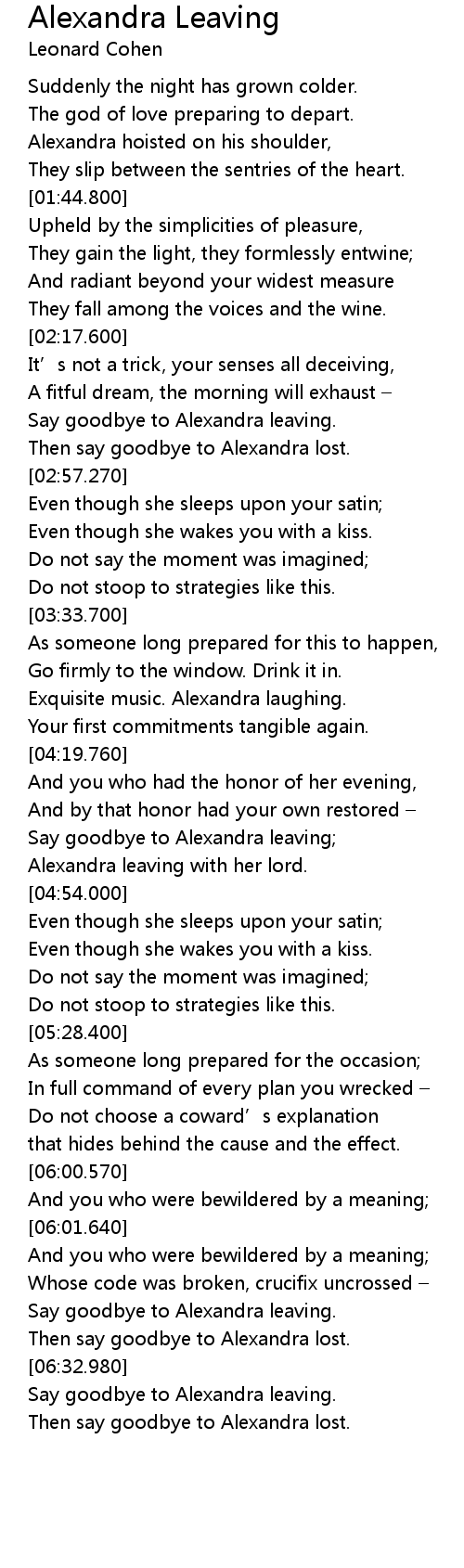 | [02:40.010] | Say goodbye to Alexandra leaving. |